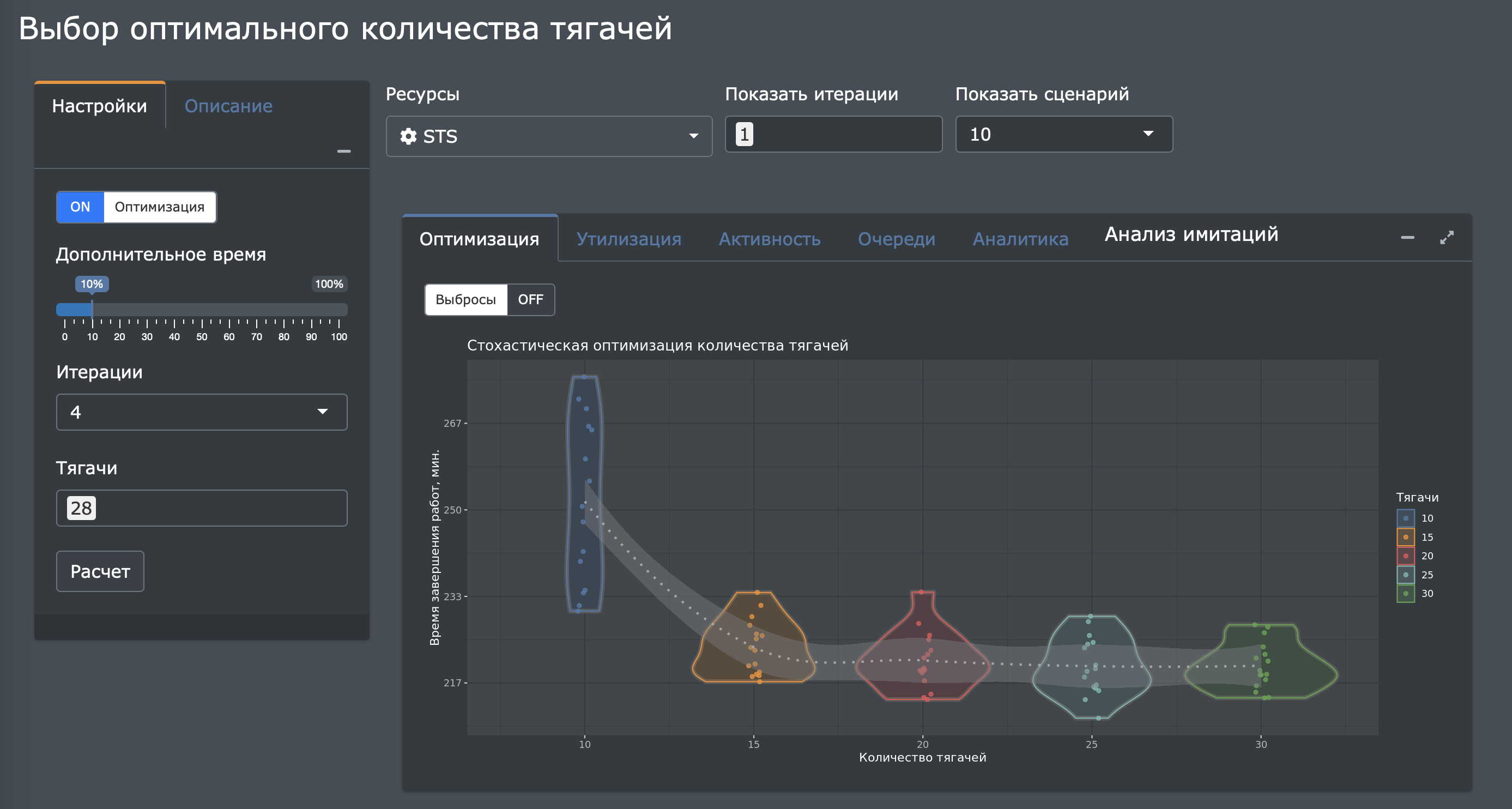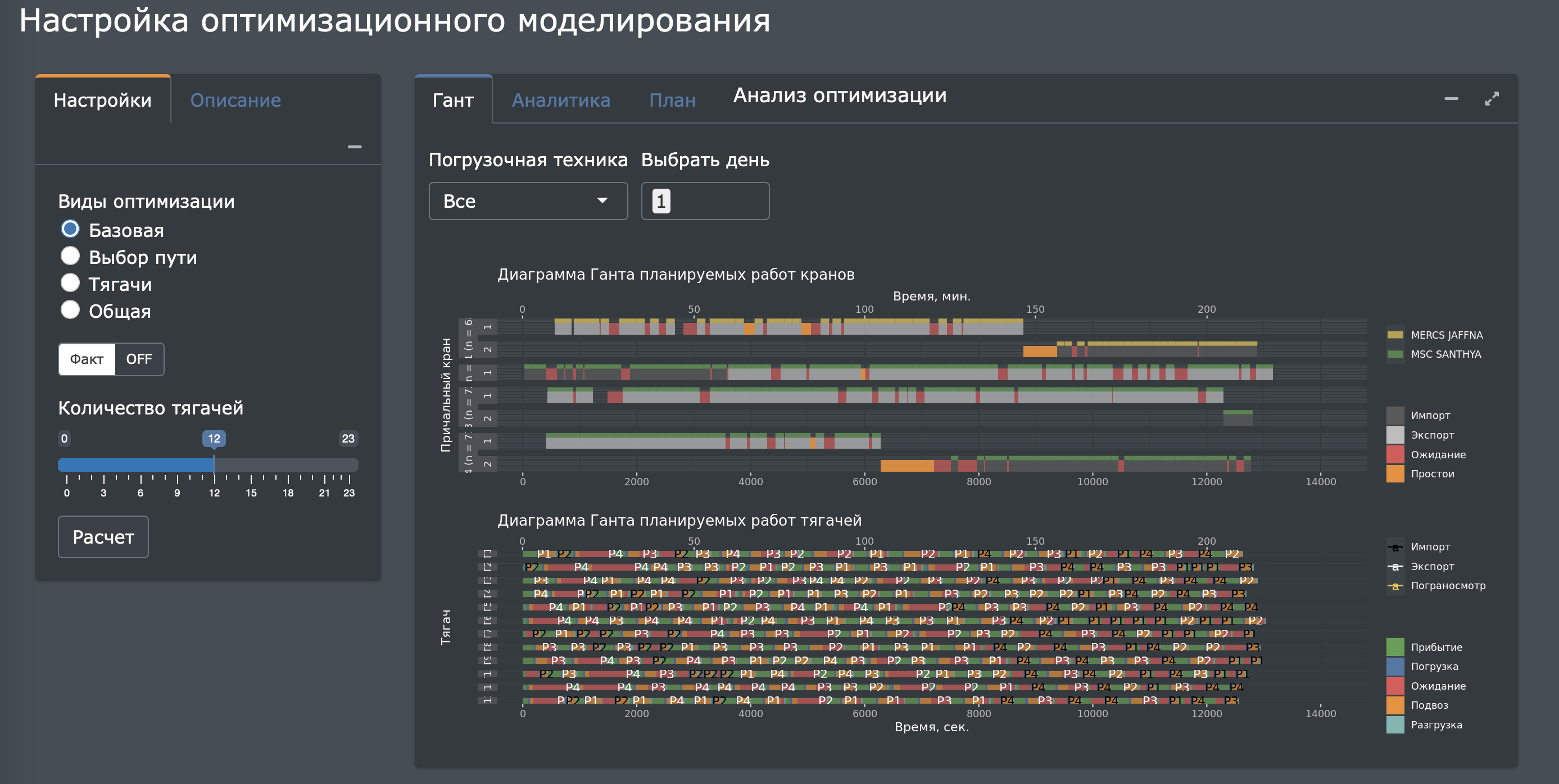 Разработка математической оптимизационной модели позволила сократить потребность в производственных фондах на 30%, а также уменьшить порожняковый пробег на 10% за счёт автоматического назначения тягачей на рабочие задания. Таким образом, отдел производственного планирования получил возможность балансировать эффективность выполнения работ с точки зрения затрат и пропускной способности производственных мощностей.